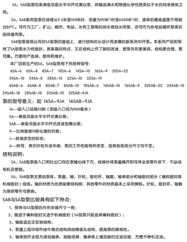 SA/SAB型双吸水泵